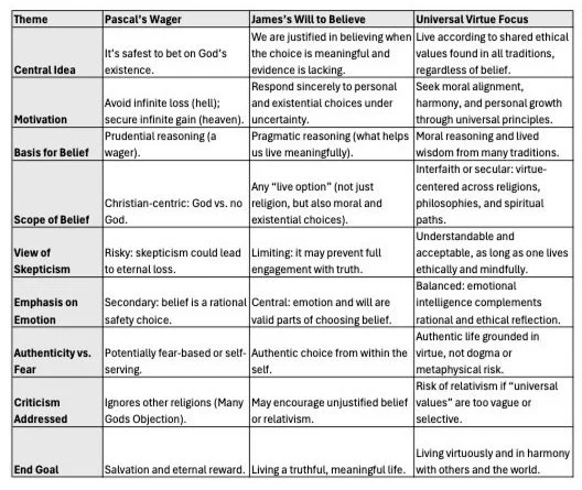 Has your worldview evolved through Pascal’s Wager, William James’s Will to Believe, or Universal Virtues?